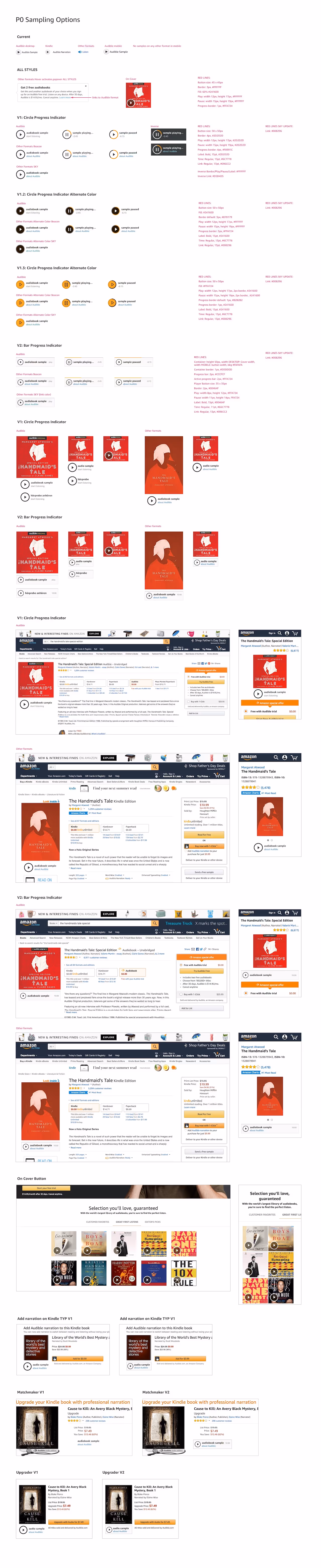 Our team looked at our current experiences on Amazon, checked heatmaps to understand dwell depth and time, reviewed analytics, and interviewed users to better understand audiobook checkout behavior. After designing immersive audiobook experiences for major titles, we moved into more scalable designs for the 200k+ titles in the Audible catalog through a modular design system.