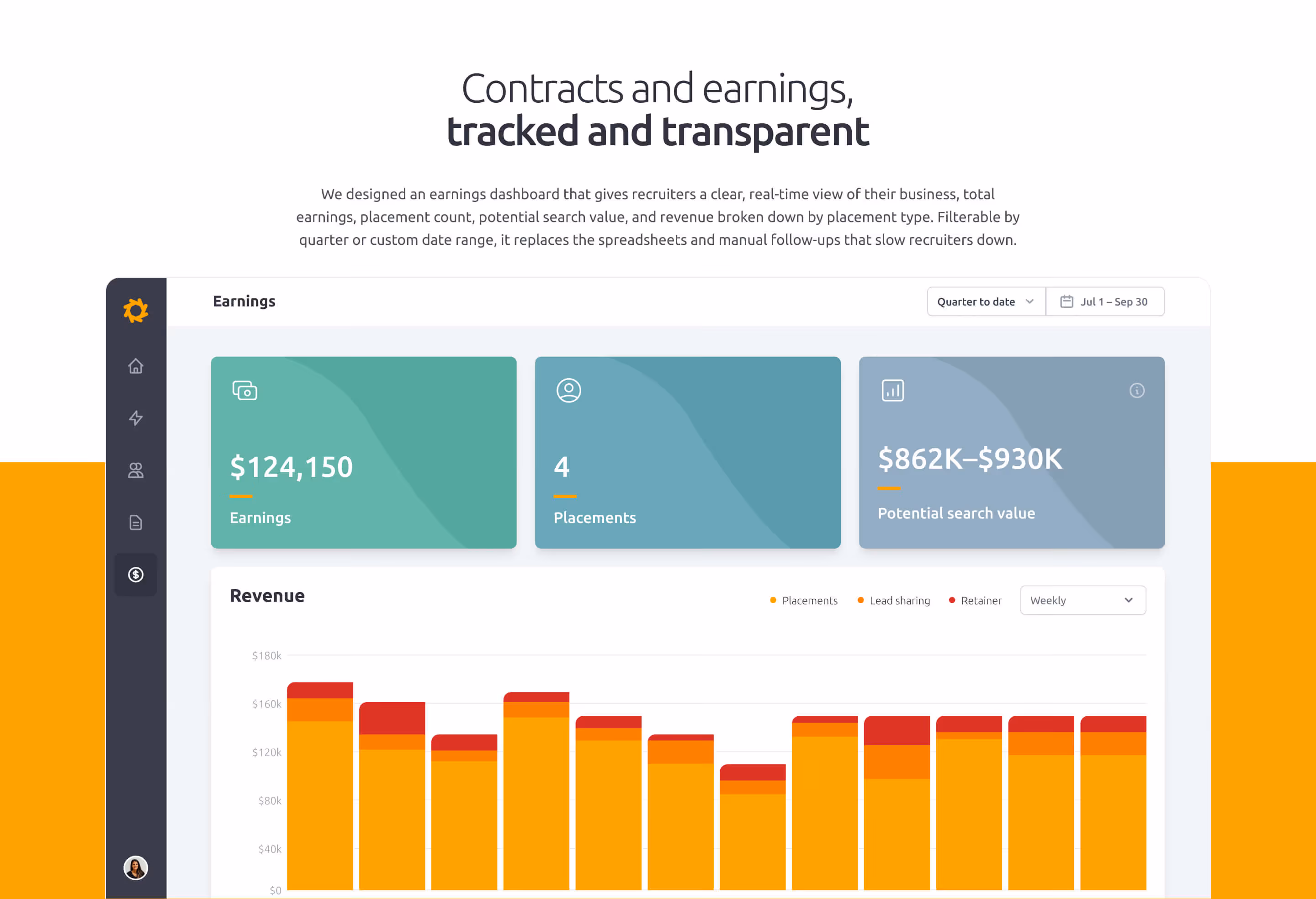 Within six months of launch, HeadRace drove $1M in ARR and transformed key workflows from manual processes into self-service experiences. Average time to placement dropped 50%, from 2.5 months to 1.25 months. Contract completion went from 3.5 weeks to just 4 days. On-time recruiter payouts improved from 82% to 93%. What began as an MVP requiring heavy team involvement shipped as a fully realized platform where recruiters and employers could independently search, connect, agree on terms, submit candidates, and track earnings.