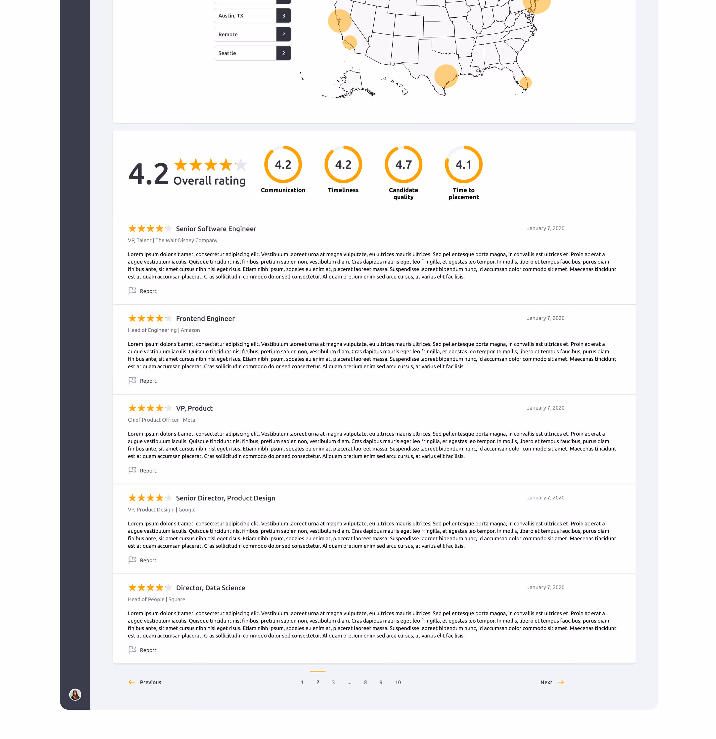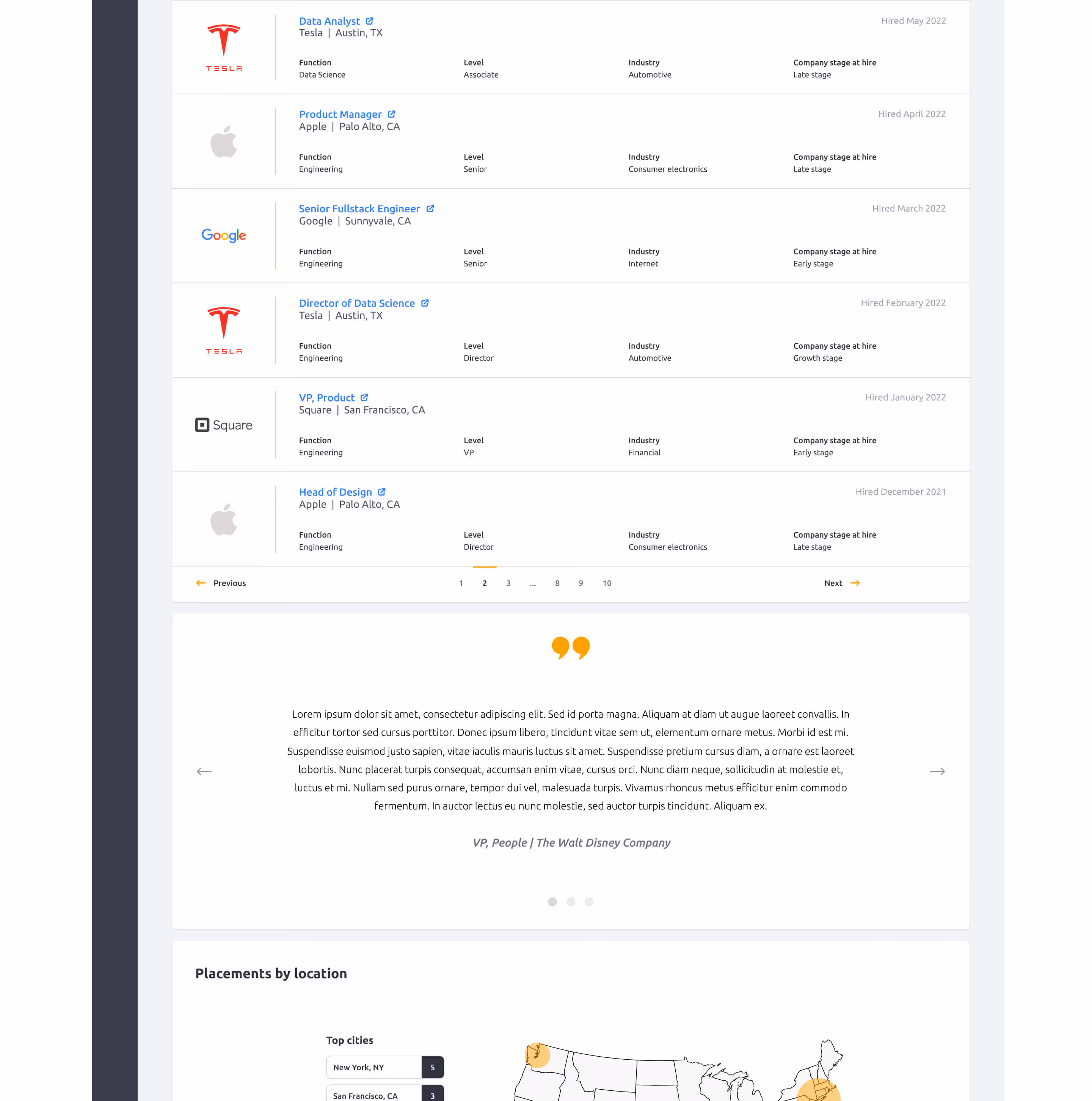 The platform is essentially a two-sided marketplace with recruiters and employers. The goal was to pull the initial brand aesthetic and design system I put into place to build a consistent UI across the platform. With a team with expansive knowledge of our users, aligning user needs was a core first need. I did this my conducting a journey mapping workshop with the entire team.