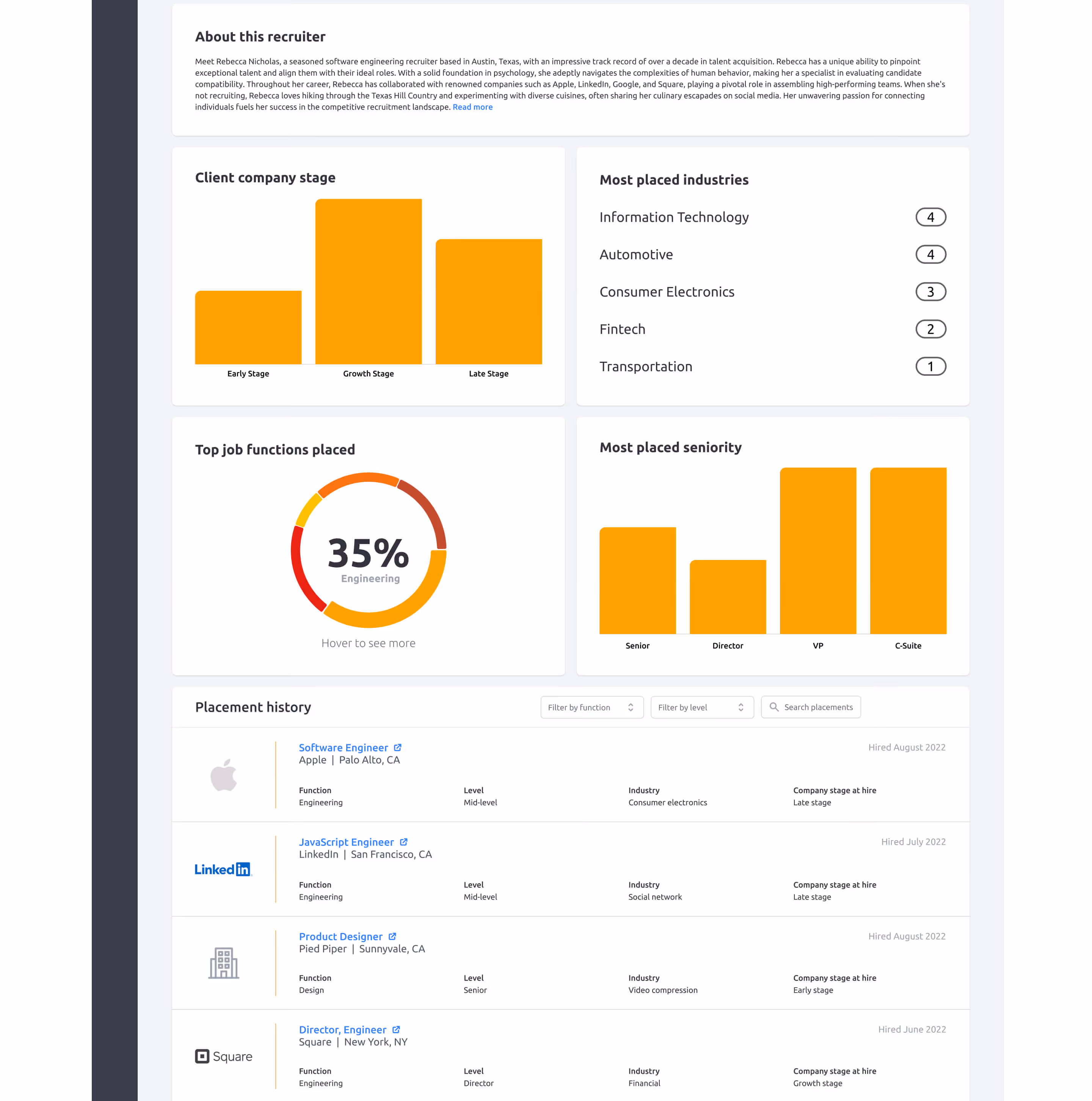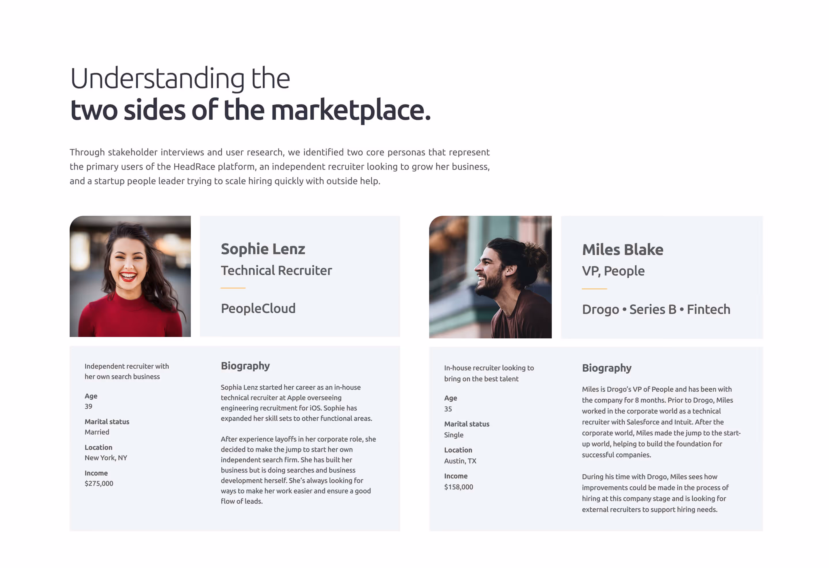 HeadRace is a venture-backed startup building a recruiter marketplace for high-growth companies that need to scale headcount fast. The platform connects employers with pre-vetted, specialized recruiters, replacing the opaque, fragmented process of finding external recruiting partners with a transparent, data-driven experience. From searchable recruiter profiles and role dossiers to candidate tracking and earnings dashboards, HeadRace brings the entire recruiting workflow into one platform. I was brought in before launch as the founding Product Designer to build out the design organization and own the end-to-end experience across both the recruiter and employer sides of the marketplace.