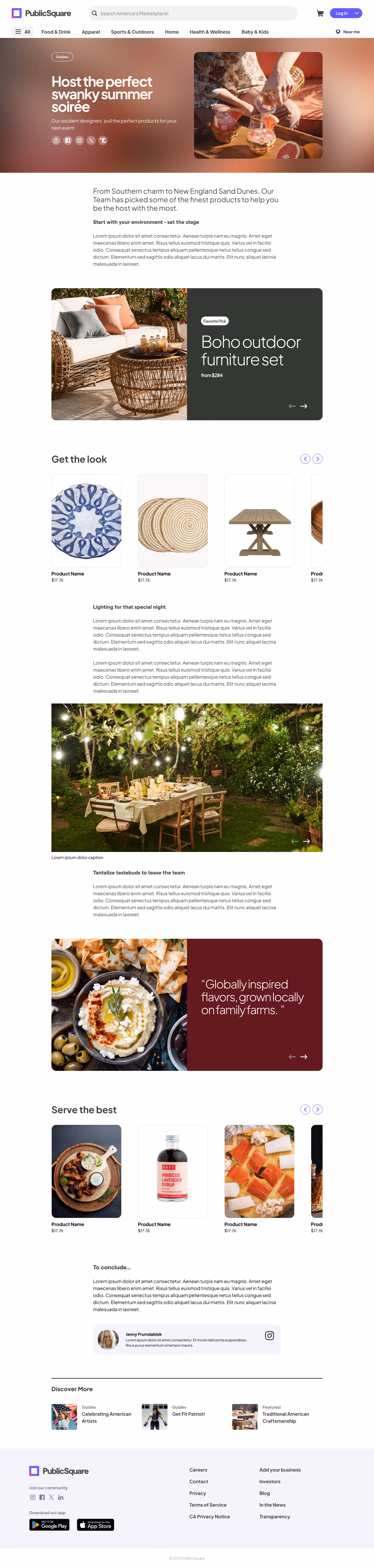 When PublicSquare first launched, it used its blog as an SEO magnet to begin organically driving users from search into the website. While this drove a lot of value for search engine optimization, the content did not highlight resonate and connect with users. With a new focus on quality content and using curation as a revenue driver, we set off to redesign the long form content pages for blog posts, guides, and more in a scalable fashion.